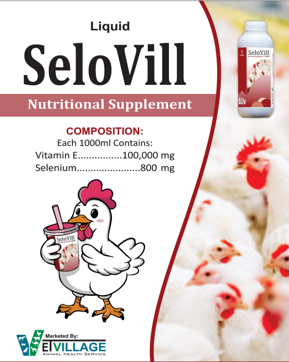 SELO VILL is an essential liquid supplement for preventing deficiencies in Vitamin E and Selenium, both crucial for maintaining strong immunity and cellular health in animals. This supplement is particularly effective in preventing conditions like encephalomalacia, exudative diathesis, and muscular dystrophy. SELO VILL also promotes better feed conversion, strengthens general body resistance, and boosts hatchability in layers and breeders.